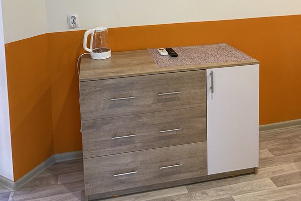 1-2-х местный номер комфорт: две односпальных или двуспальная кровати, телевизор, холодильник, кондиционер, сан.узел, душ с горячей и холодной водой, стол и стулья, посуда, полотенца. Новый обновленный ремонт.