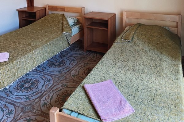 1-2-3-4-х местные номера стандарт: 2 раздельные кровати + диван, телевизор, холодильник, сплит-система, сан.узел с беде, ванна с горячей и холодной водой, стол и стулья, полотенце для рук и лица.