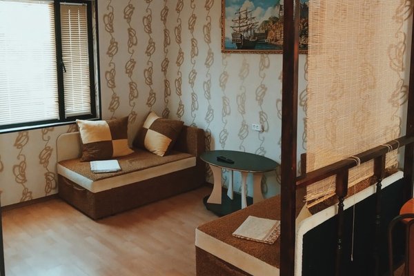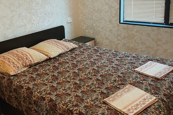1-2-3-4-х местные номера (двухкомнатный) люкс: сплит-система, ЖК-телевизор, журнальный столик, шкаф, санузел с душевой кабиной, холодильник, обеденный и разделочный стол, микроволновая печь, чайник, посуда, банные и кухонные полотенца, прикроватные тумбочки, туалетные принадлежности: (туалетная бумага, жидкое мыло). Банные полотенца по требованию. Удобства в номере