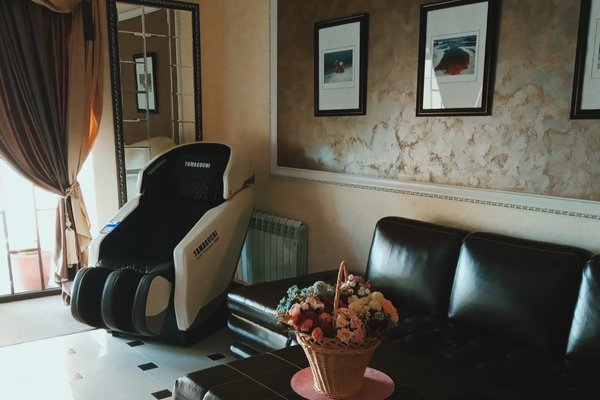 3-4-х местные номера стандарт: двуспальная кровать, диван, санузел с душем, ТВ, холодильник, кондиционер, шкаф, тумбочки, столик, стулья. На ресепшене кулер с горячей и холодной водой.