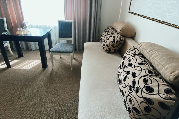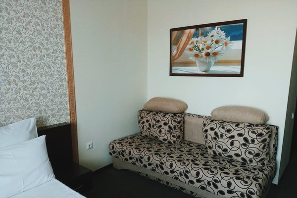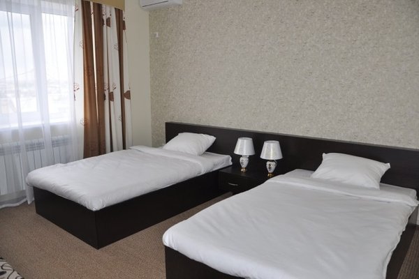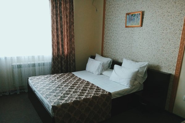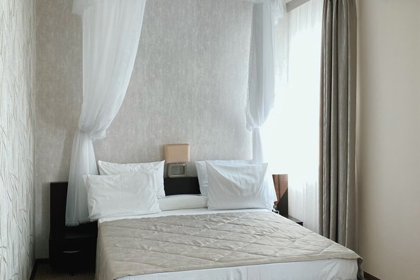 1-2-х местные номера стандарт: двуспальная кровать, санузел с душем, ТВ, холодильник, кондиционер, шкаф, тумбочки, столик, стулья. На ресепшене кулер с горячей и холодной водой.